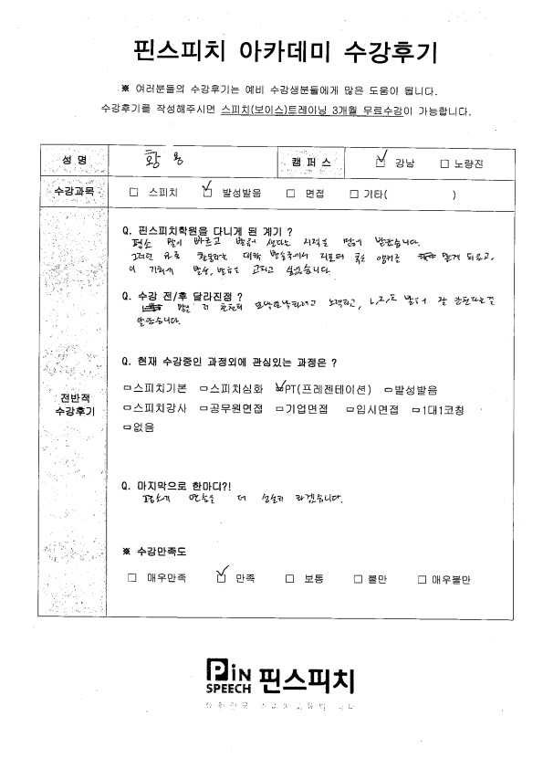 말을 더 천천히 또박또박하려고 노력하고 평소에 연습을 더 성실히 하겠습니다.
