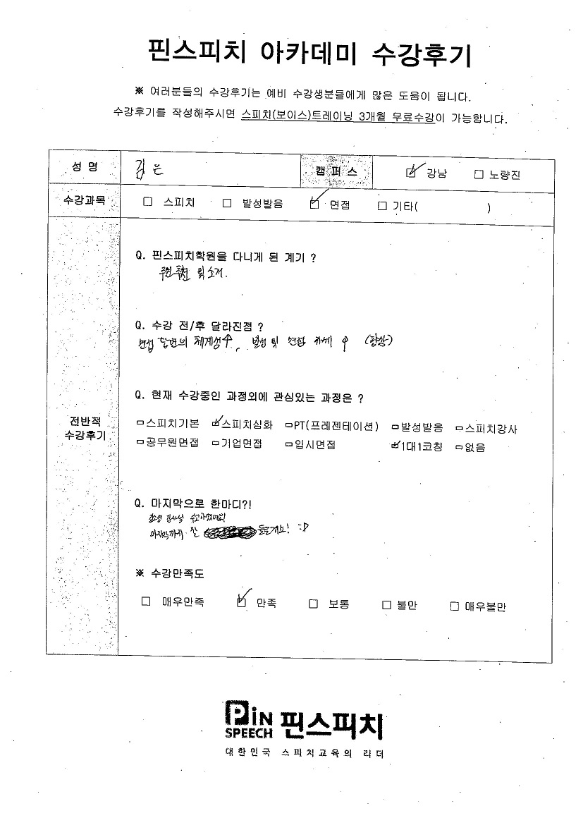 답변의 체계가 생겼고, 발성과 면접 자세의 변화가 생겼습니다.