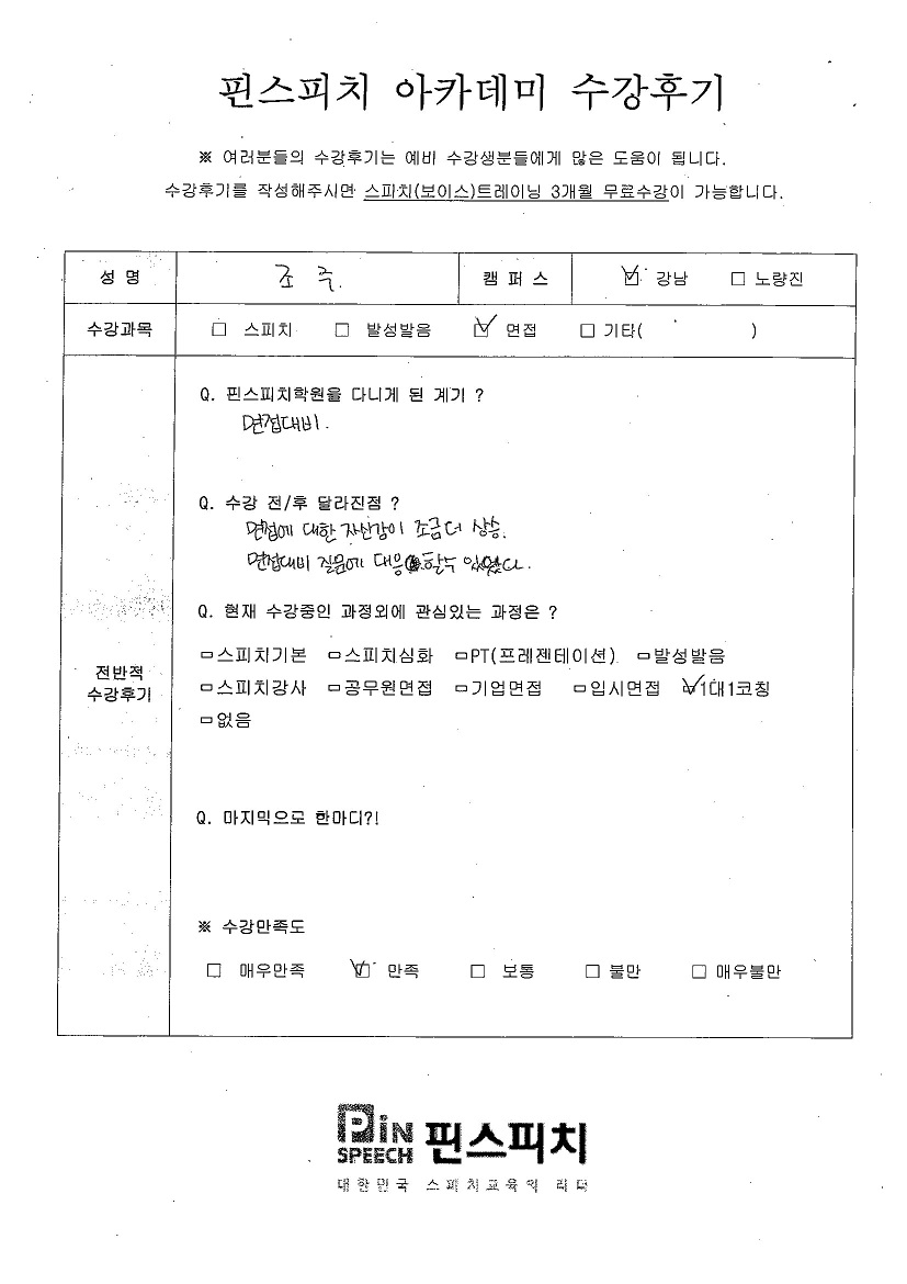 면접대비를 잘 할 수 있었고, 자신감 또한 상승하였습니다.