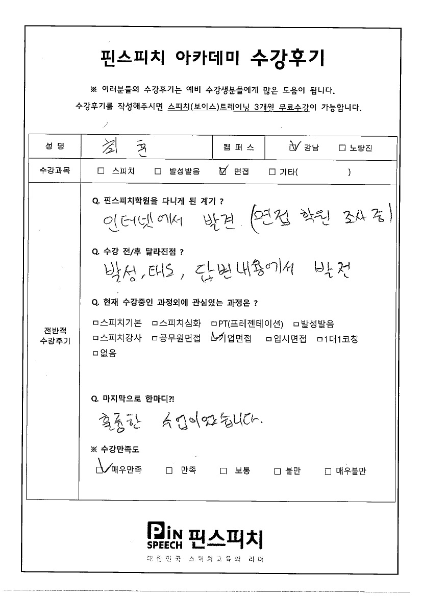 발성, 태도, 답변내용에서 전부 발전이 있었습니다.