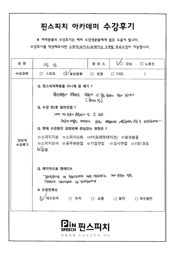 발성에 안 좋은 습관을 고칠 수 있었습니다.