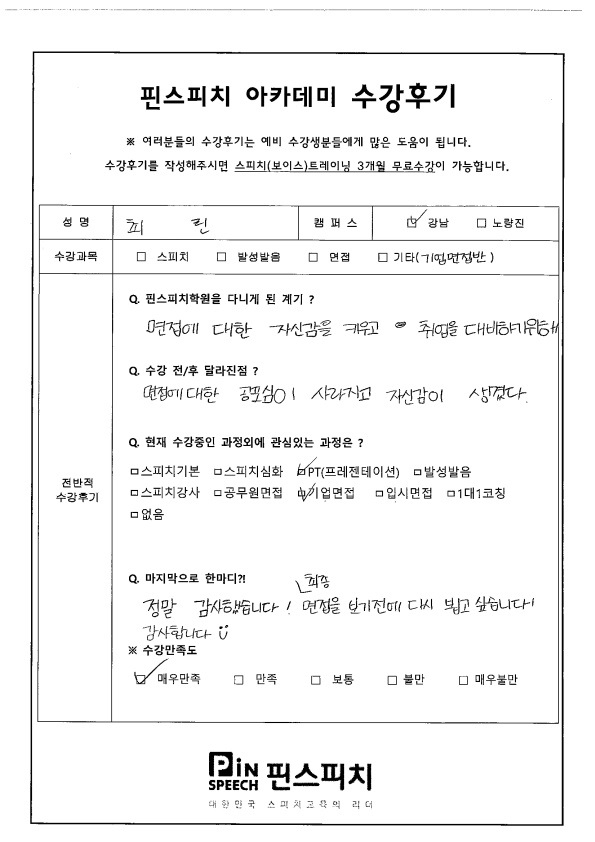 면접에 대한 공포심이 사라지고 자신감이 생겼습니다.
