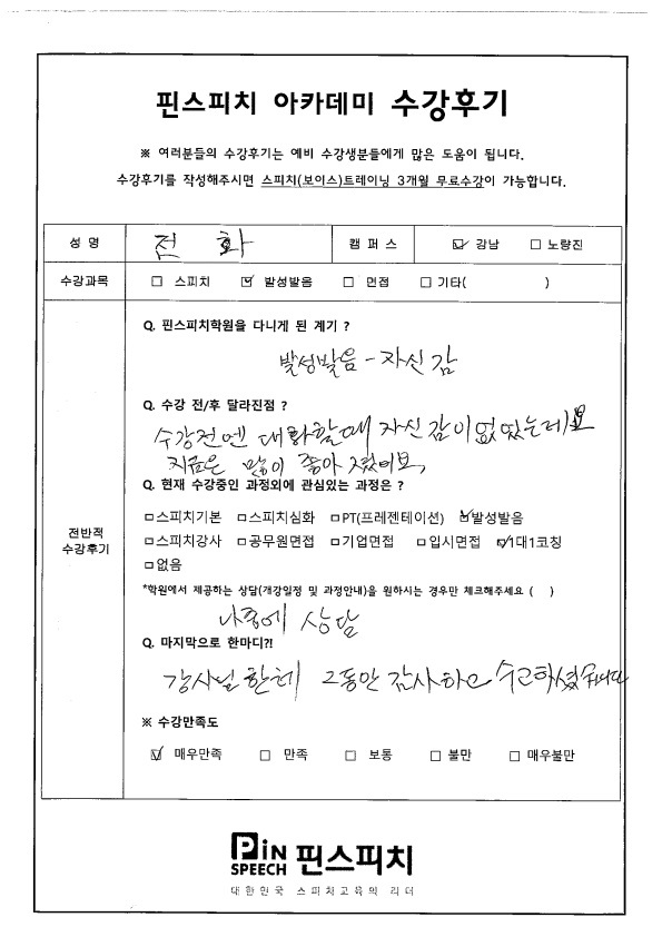 수강 전에는 대화할 때 자신감이 부족했는데 지금은 많이 좋아졌어요.