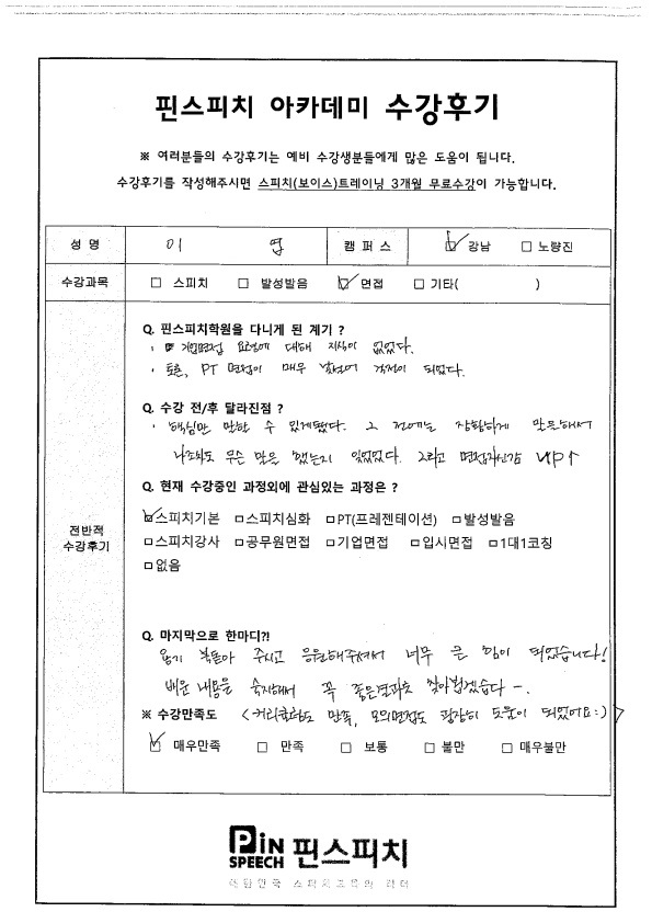 면접요령이 생겼고 핵심만 말할 수 있게 되었습니다.