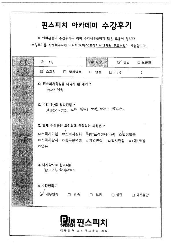 스피치 방식에 대한 이해가 생기고, 자신감도 붙었습니다.