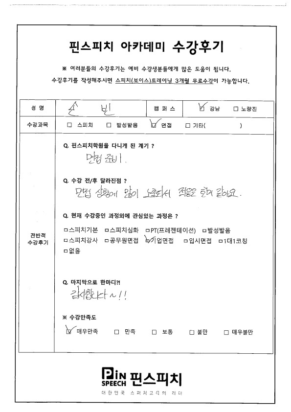 모의 면접 덕분에 실제 면접에서도 잘 적응할 것 같습니다.