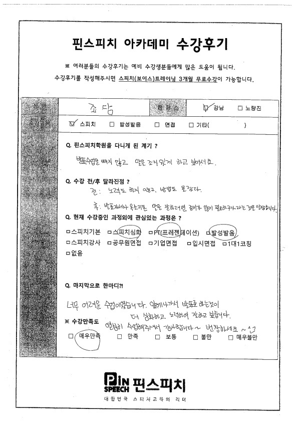 수업에서 배운대로 더 노력하여 대중 앞에서 발표를 잘하고 싶습니다.