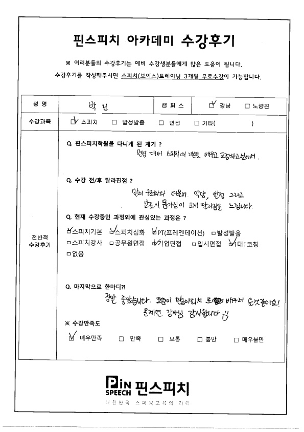 트레이닝을 통해 발표시 몸가짐이 달라졌습니다.