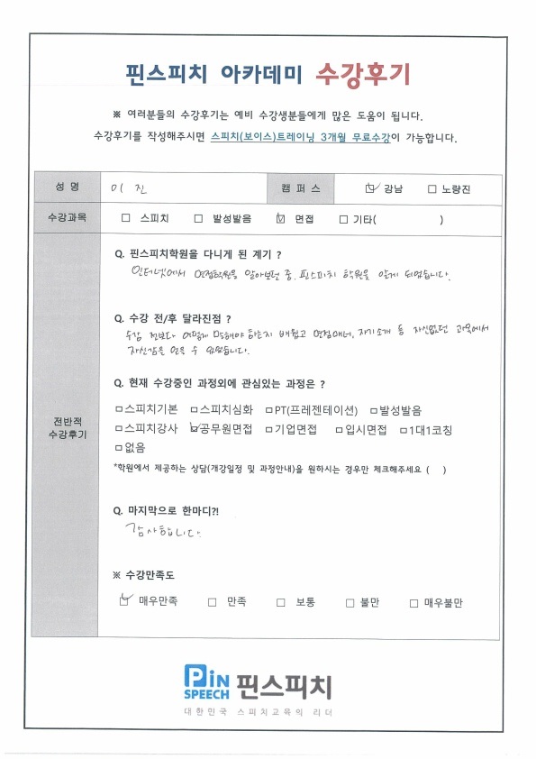 면접매너, 자기소개 등 자신없던 과목에서 자신감을 얻을 수 있었습니다.
