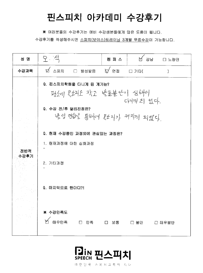 발성 연습을 통해서 목소리가 커지게 됐습니다