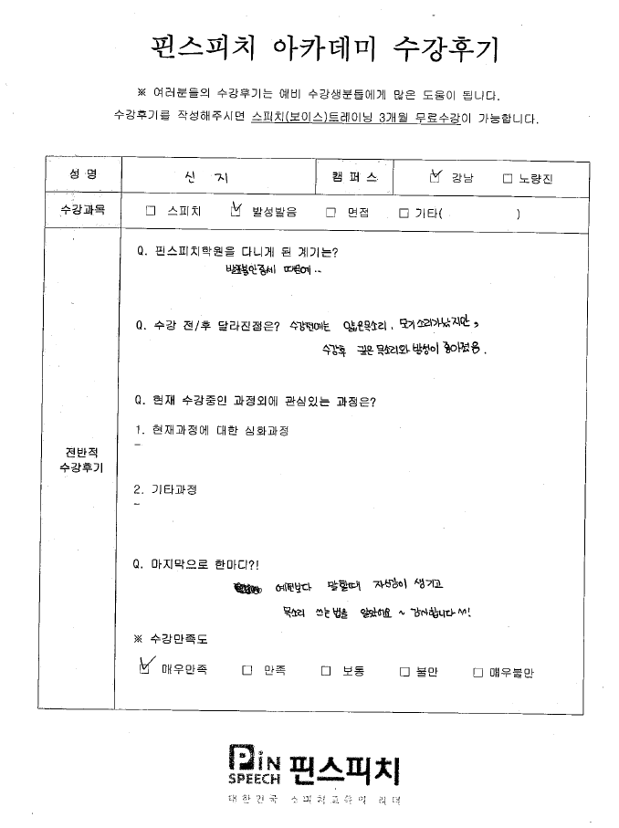 예전보다 말할때 자심감이 생기고 목소리 쓰는 법을 알았어요~