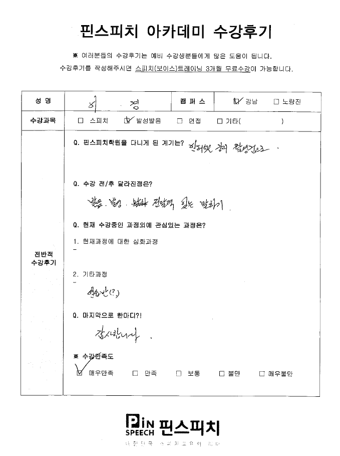 핀스피치를 다니면서 …