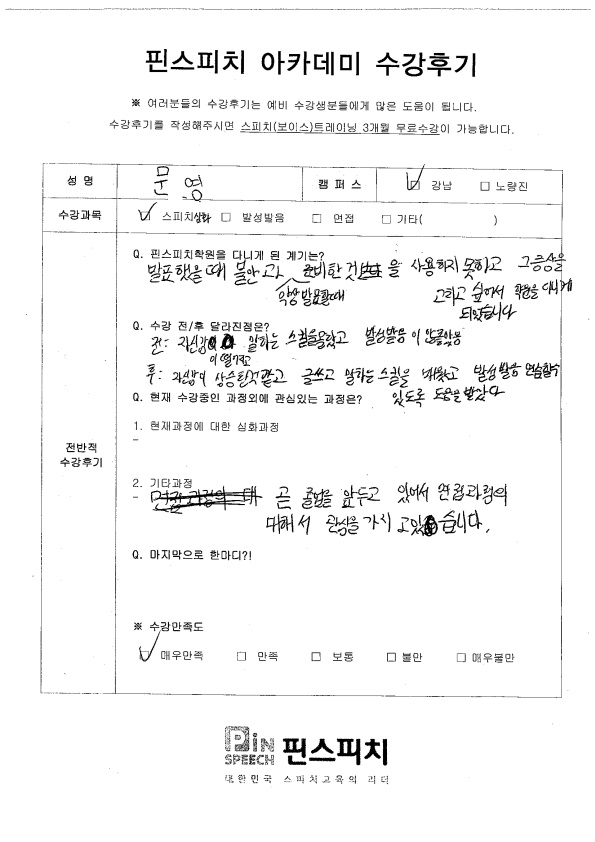 자신감이 상승한 거 같고, 말하는 스킬을 배웠고 발성발음 연습할 수 있도록 도움을 받았다