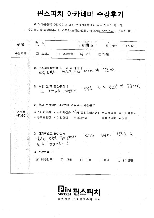 더 자신있고 차분하게 면접을 볼 수 있었던 것 같습니다.