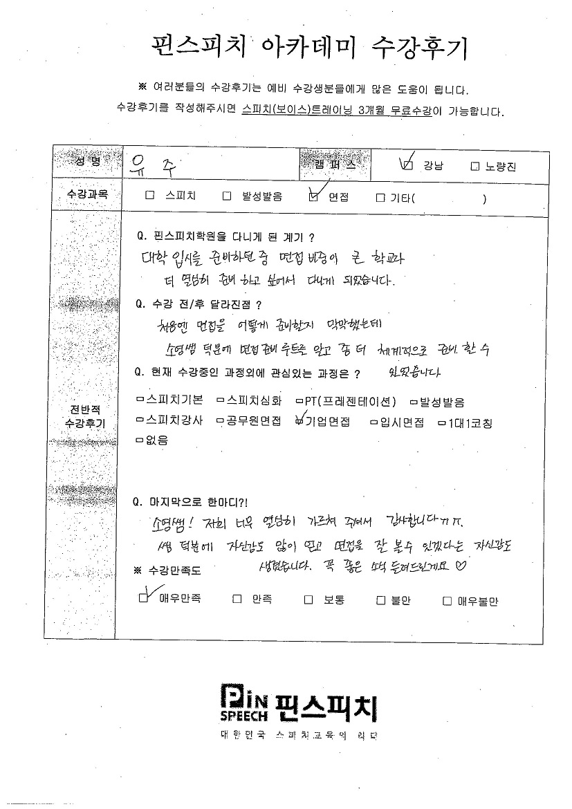 강사님 덕분에 면접 준비를 체계적으로 할 수 있었습니다.