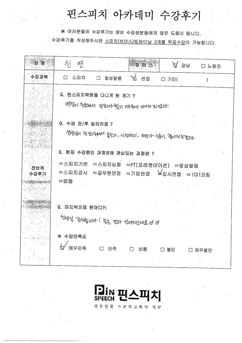 목소리, 시선처리, 태도에 있어 전부 발전되었습니다.