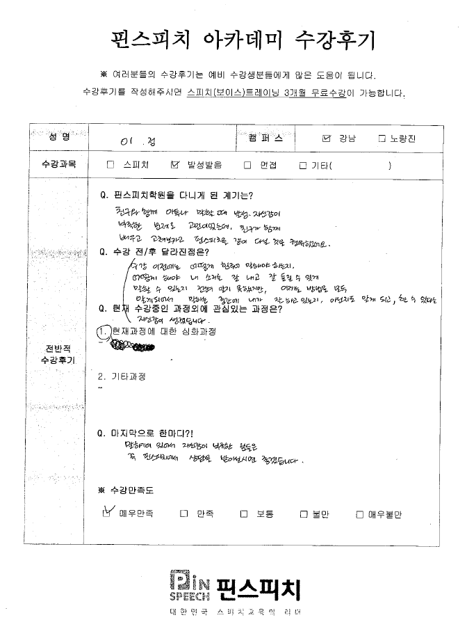 말하기에 있어서 자신감이 부족한 분들은 꼭 핀스피치에서 상담을 받아보시면 좋겠습니다!