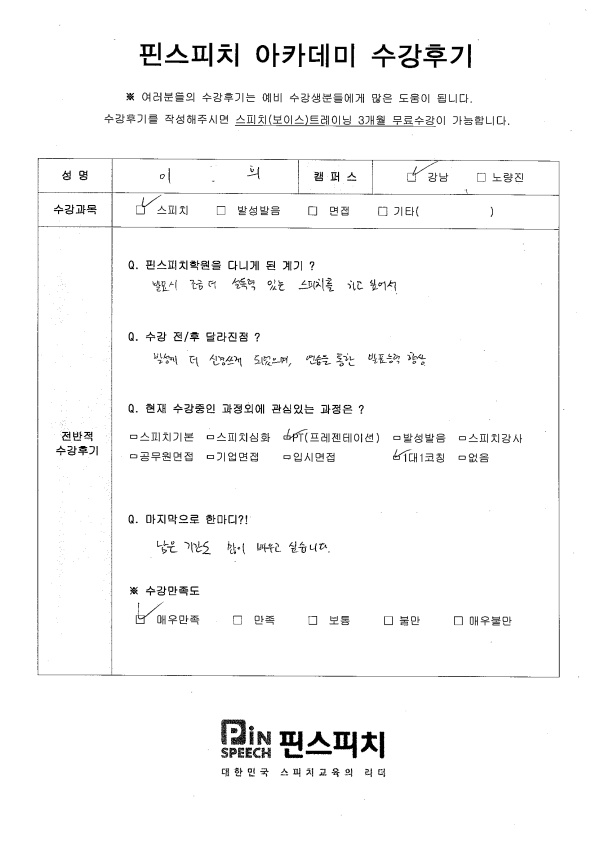 발성에 더 신경쓰게 되었으며, 연습을 통한 발표능력 향상