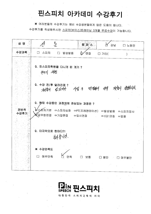 자신감이 없었지만 수업 후 면접에 대해 자신감이 생겼습니다.
